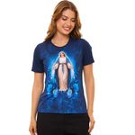 Baby Look com estampa de Nossa Senhora das Graças, trazendo a imagem da Mãe que acolhe e intercede por seus filhos. A estampa em alta definição valoriza cada detalhe da devoção mariana, transmitindo beleza e espiritualidade.