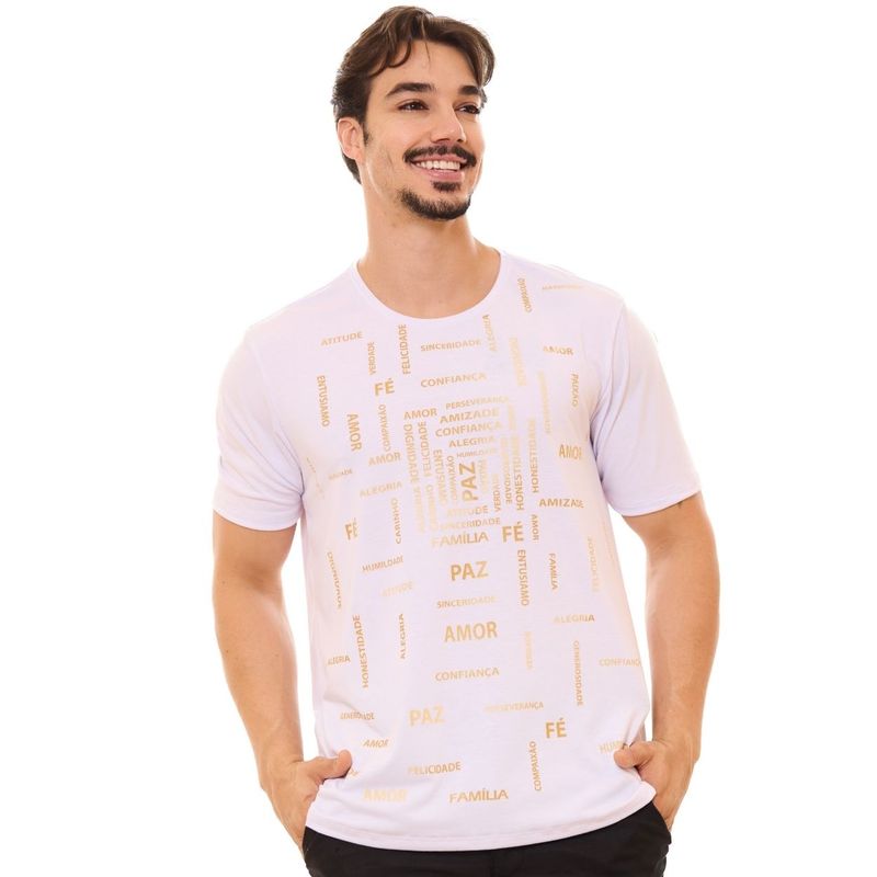 Uma peça pensada para celebrar o amor e a união. Com estampa em silk, esta camiseta expressa votos de bênçãos e bons desejos para a vida a dois.