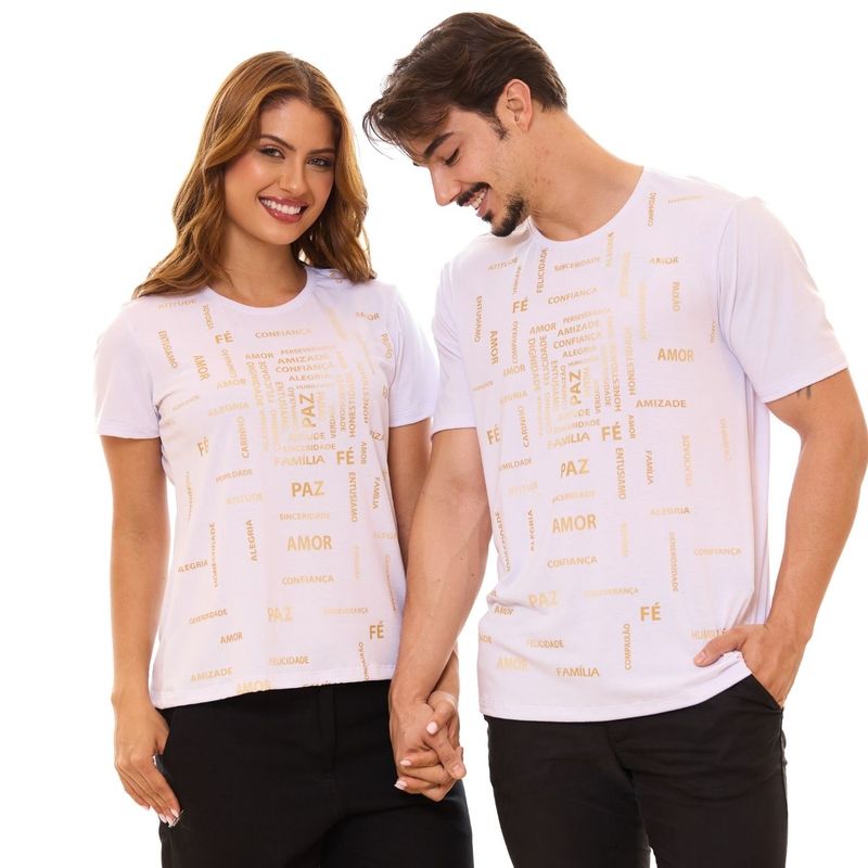 Feita em algodão de toque macio, é perfeita para usar em datas especiais ou no dia a dia, transmitindo alegria e fé na caminhada conjugal. Disponível na versão masculina e feminina.