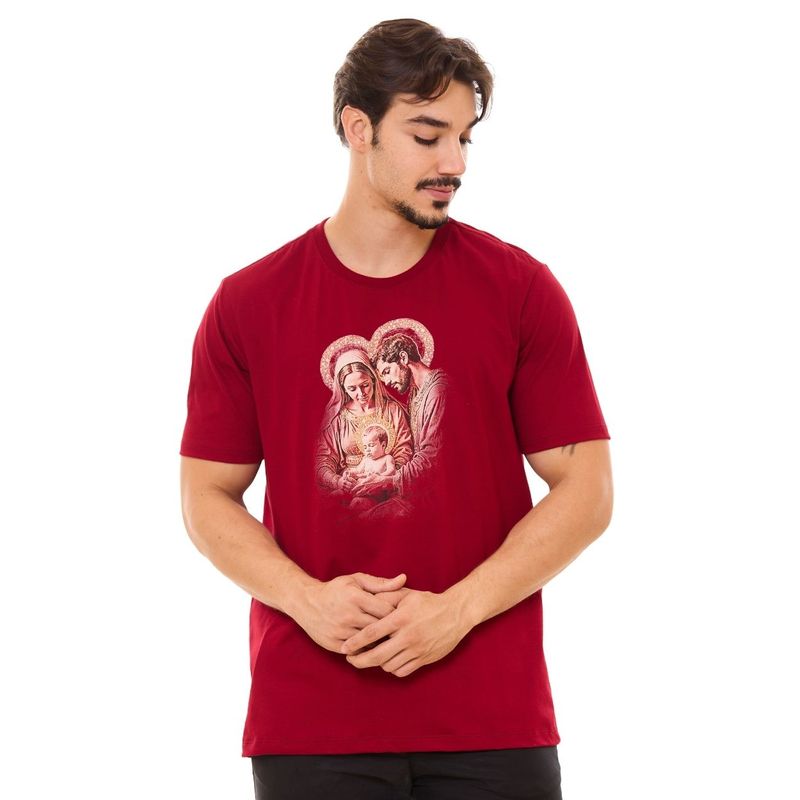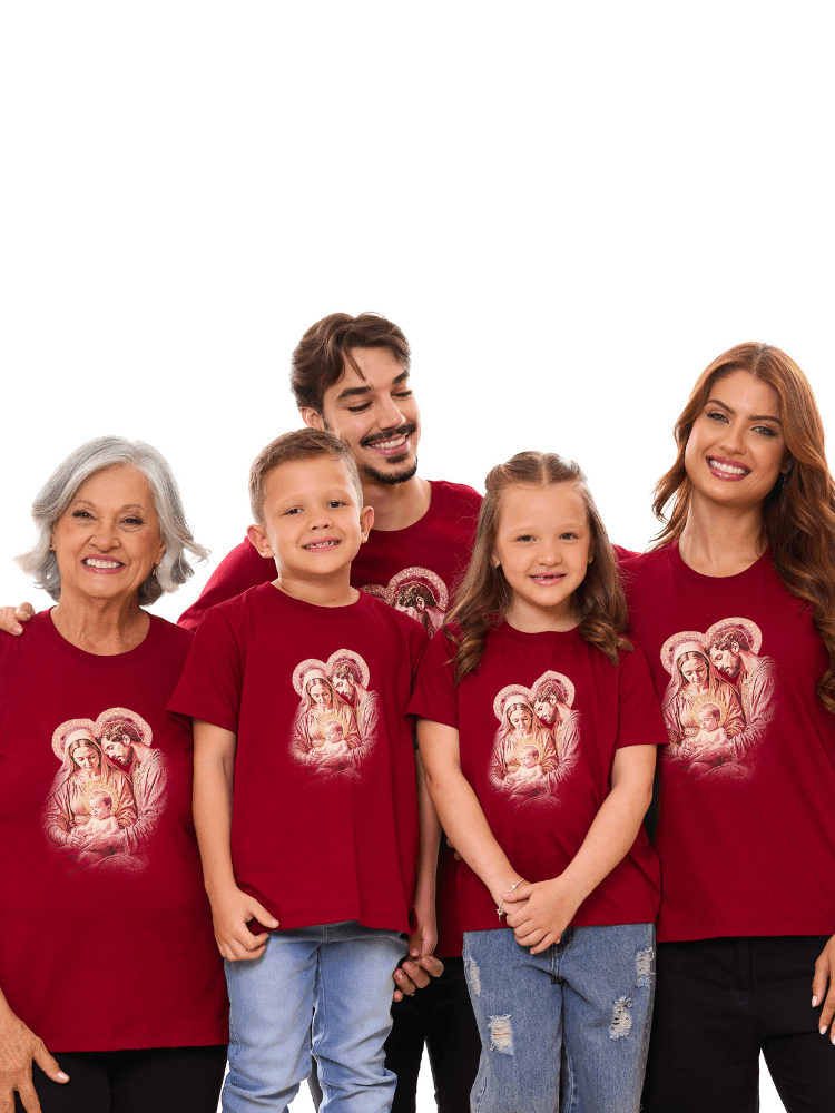 A Sagrada Família é o maior exemplo de amor, união e fé dentro do lar cristão. Esta camiseta traz em silk de alta definição a imagem da Sagrada Família, traduzindo em cada detalhe o valor da vida familiar iluminada pela presença de Jesus, Maria e José.